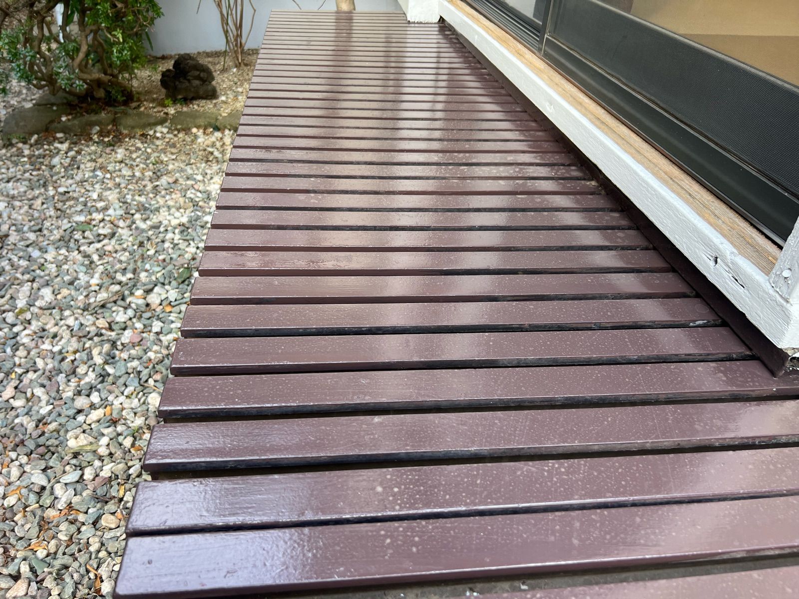 先日プロペイントでは、窓から庭に設置されている「縁台」の塗装をさせていただきました。