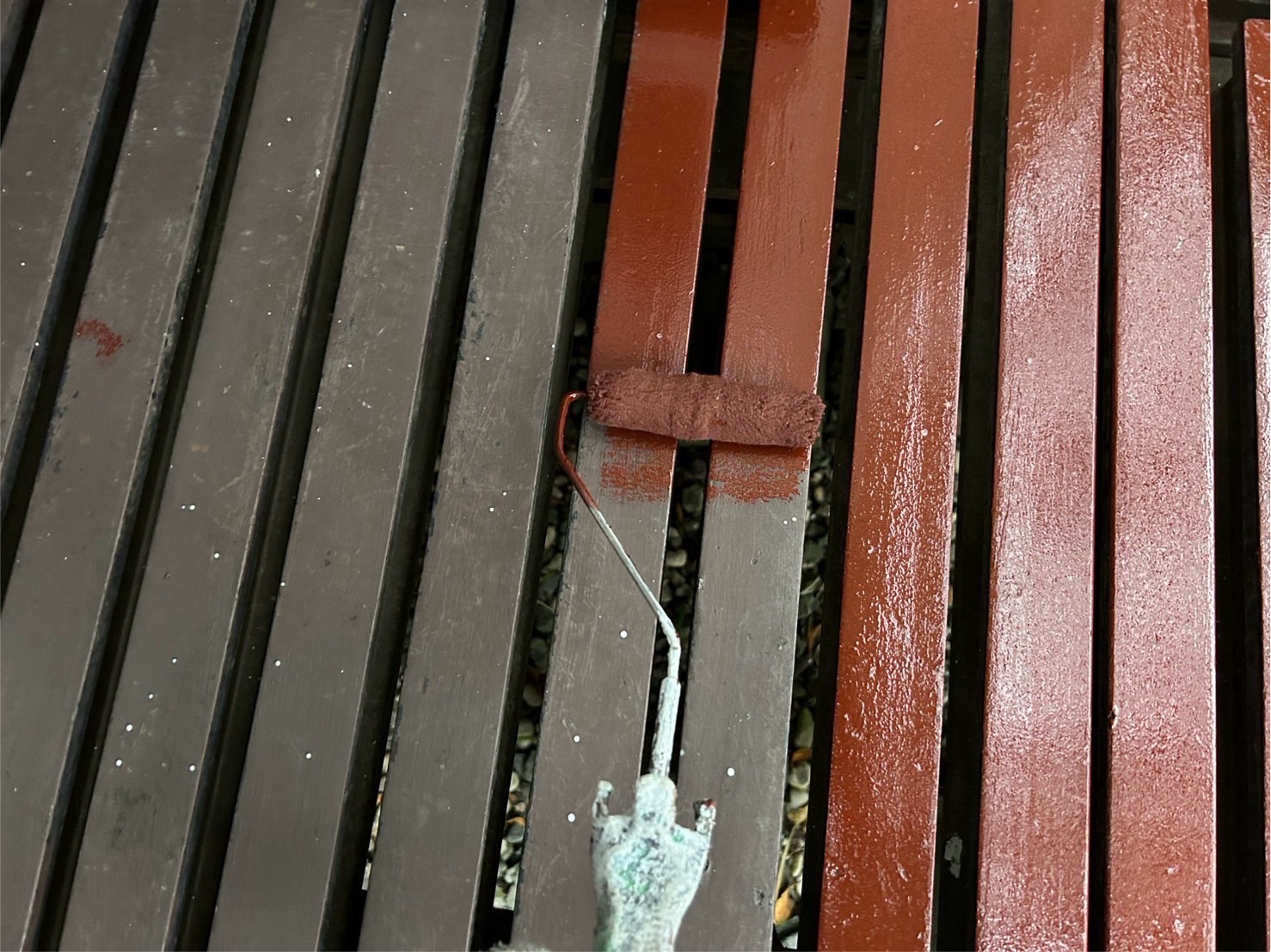 ローラーを使って、ムラができないように表面や裏面、隙間などを順番に塗っていきます。